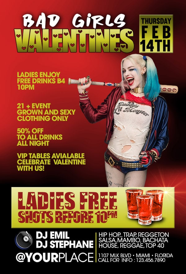Download this exclusive Valentines template to promote your next party. Fully editable PSD with photoshop, this professional flyer will attract your guests.