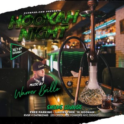 Download this exclusive Hookah template to promote your next party. Fully editable PSD with photoshop, this professional flyer will attract your guests.