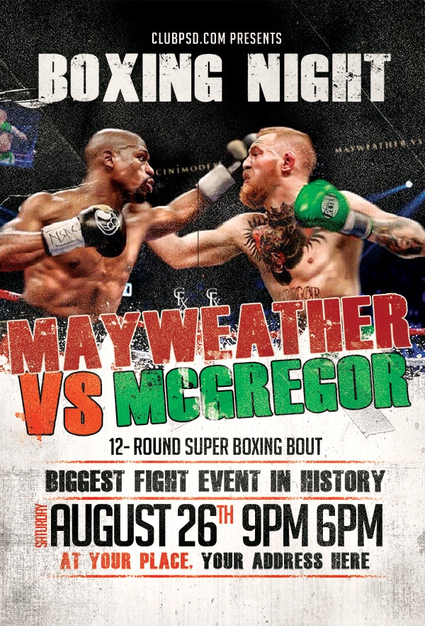 After buying this Boxing flyer with Paypal or your credits, you will download an easily customizable PSD for your next party.