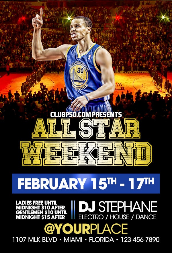 After buying this Basketball & NBA flyer with Paypal or your credits, you will download an easily customizable PSD for your next party.