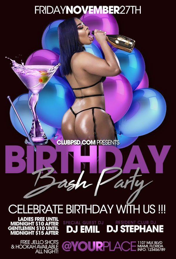 After buying this Birthday flyer with Paypal or your credits, you will download an easily customizable PSD for your next party.