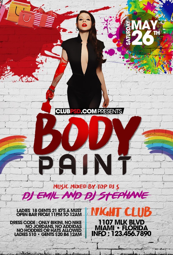 Download this exclusive Body Paint template to promote your next party. Fully editable PSD with photoshop, this professional flyer will attract your guests.