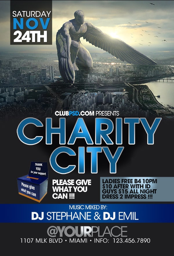 After buying this Church & Charity flyer with Paypal or your credits, you will download an easily customizable PSD for your next party.