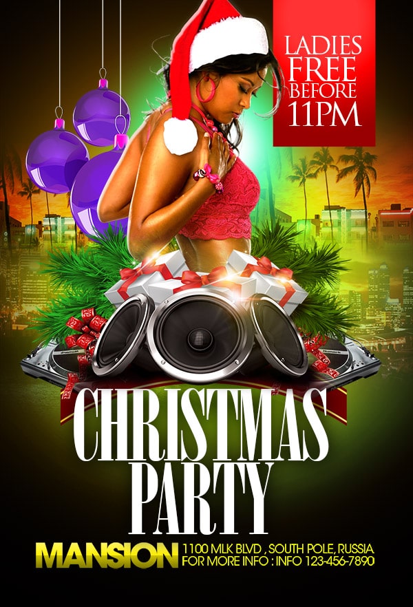 After buying this Christmas flyer with Paypal or your credits, you will download an easily customizable PSD for your next party.