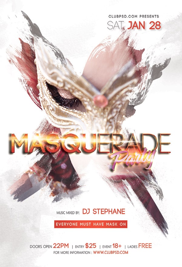 After buying this Costume & Masquerade flyer with Paypal or your credits, you will download an easily customizable PSD for your next party.