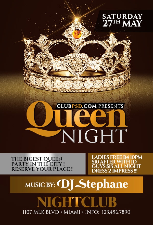 After buying this Queen’s Day flyer with Paypal or your credits, you will download an easily customizable PSD for your next party.