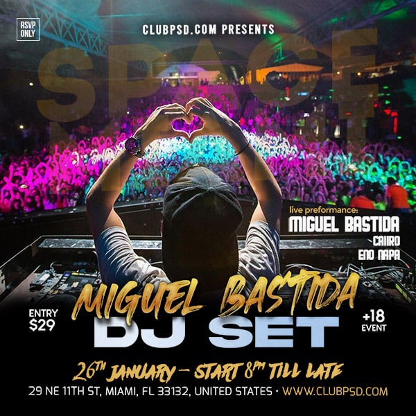 After buying this Dj Dance flyer with Paypal or your credits, you will download an easily customizable PSD for your next party.