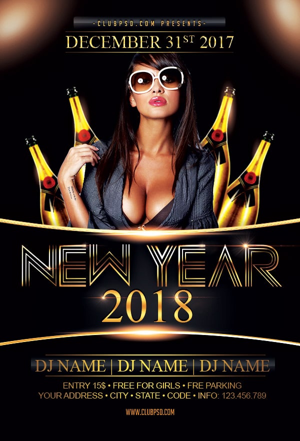 Download this exclusive New year template to promote your next party. Fully editable PSD with photoshop, this professional flyer will attract your guests.