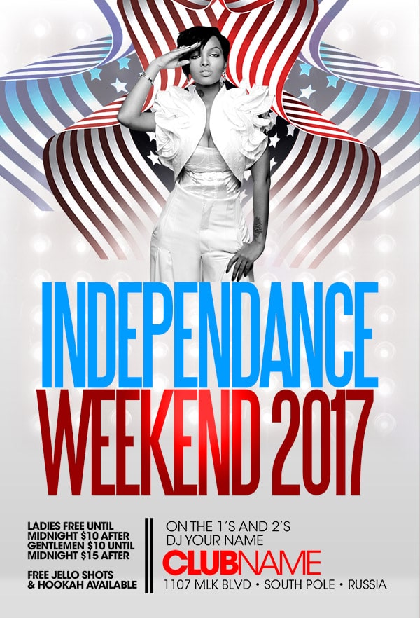 After buying this Independence Day flyer with Paypal or your credits, you will download an easily customizable PSD for your next party.