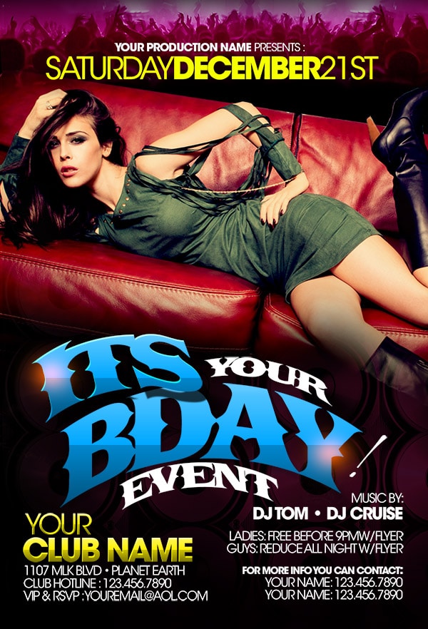 After buying this Birthday flyer with Paypal or your credits, you will download an easily customizable PSD for your next party.