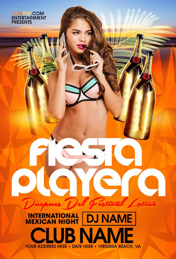 After buying this Bikini flyer with Paypal or your credits, you will download an easily customizable PSD for your next party.