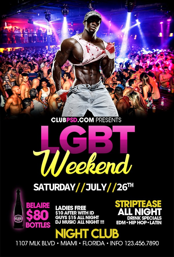 Download this exclusive Pride Gay & Lesbian template to promote your next party. Fully editable PSD with photoshop, this professional flyer will attract your guests.