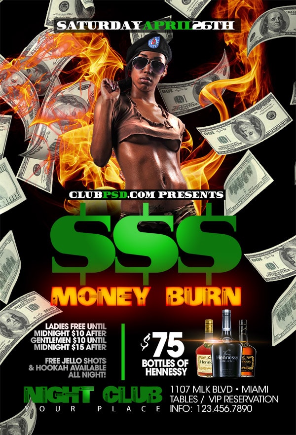 Download this exclusive Money template to promote your next party. Fully editable PSD with photoshop, this professional flyer will attract your guests.