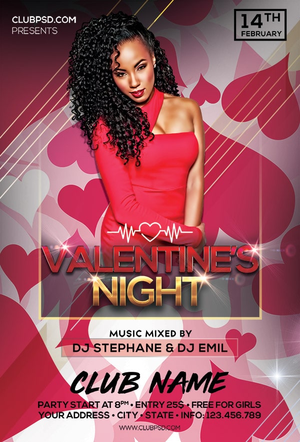 Download this exclusive Valentines template to promote your next party. Fully editable PSD with photoshop, this professional flyer will attract your guests.