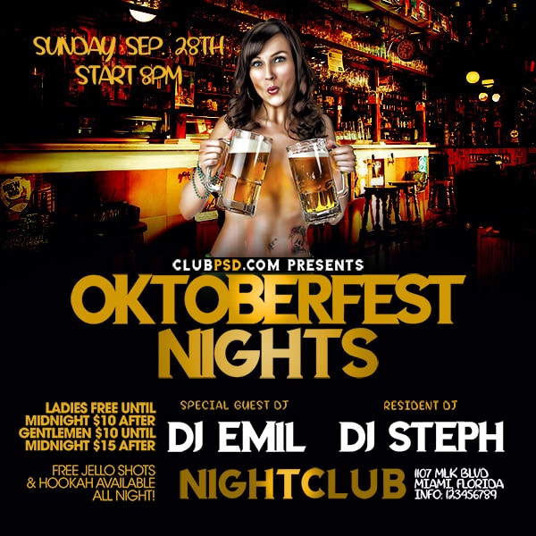 After buying this Oktoberfest flyer with Paypal or your credits, you will download an easily customizable PSD for your next party.