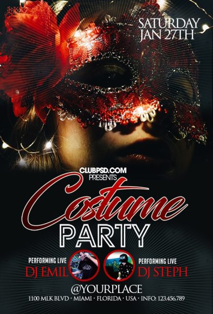 After buying this Costume & Masquerade flyer with Paypal or your credits, you will download an easily customizable PSD for your next party.