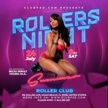 After buying this Sneakers & Rollers flyer with Paypal or your credits, you will download an easily customizable PSD for your next party.