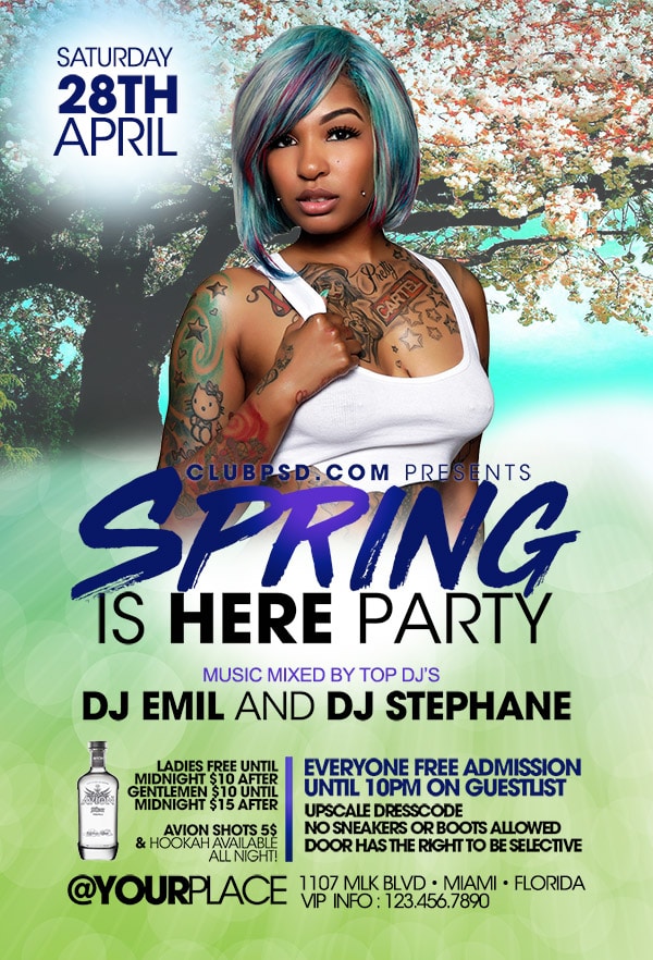 Download this exclusive Spring Graphics template to promote your next party. Fully editable PSD with photoshop, this professional flyer will attract your guests.