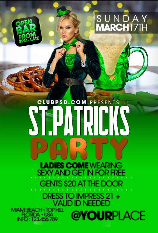 After buying this St Patricks day flyer with Paypal or your credits, you will download an easily customizable PSD for your next party.