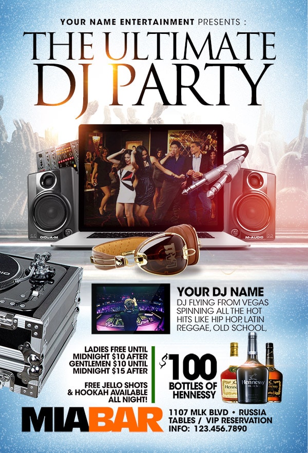 After buying this Dj Dance flyer with Paypal or your credits, you will download an easily customizable PSD for your next party.