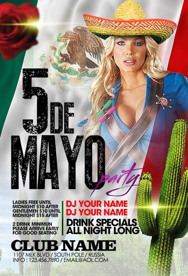 Download this exclusive Cinco de Mayo template to promote your next party. Fully editable PSD with photoshop, this professional flyer will attract your guests.