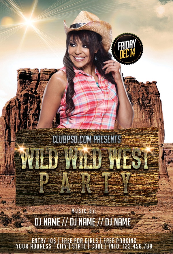 Download this exclusive Western template to promote your next party. Fully editable PSD with photoshop, this professional flyer will attract your guests.