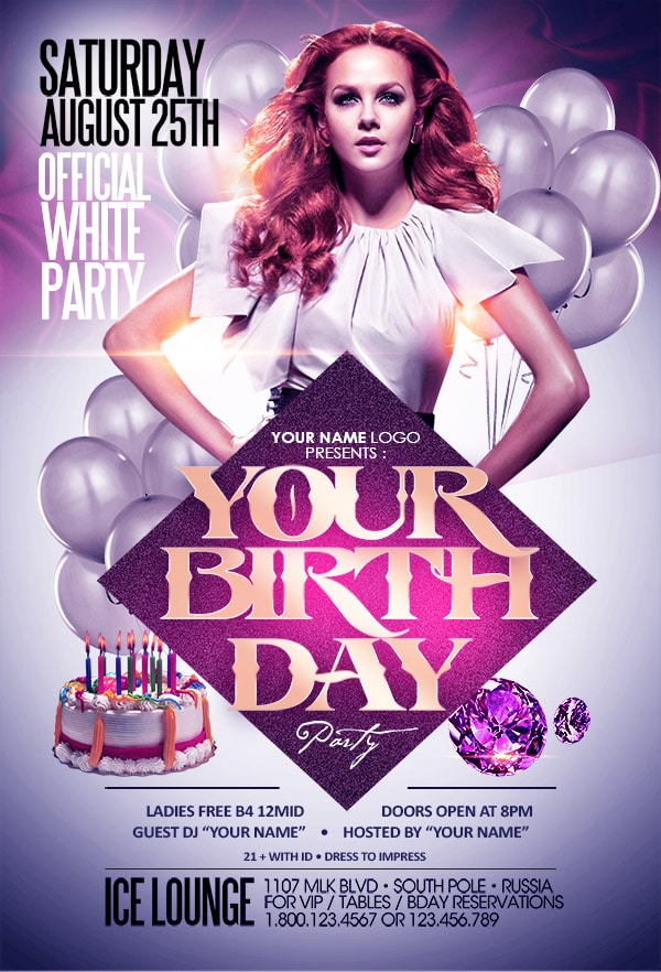 After buying this Birthday flyer with Paypal or your credits, you will download an easily customizable PSD for your next party.